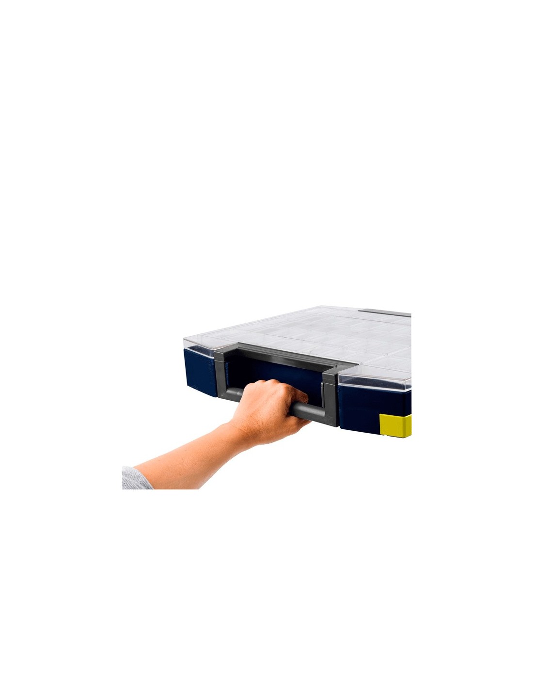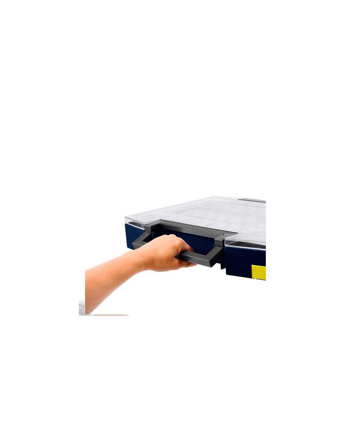 Maletín de polipropileno y tapa de policarbonato y con perfiles en O hacen que no se muevan las pequeñas piezas.