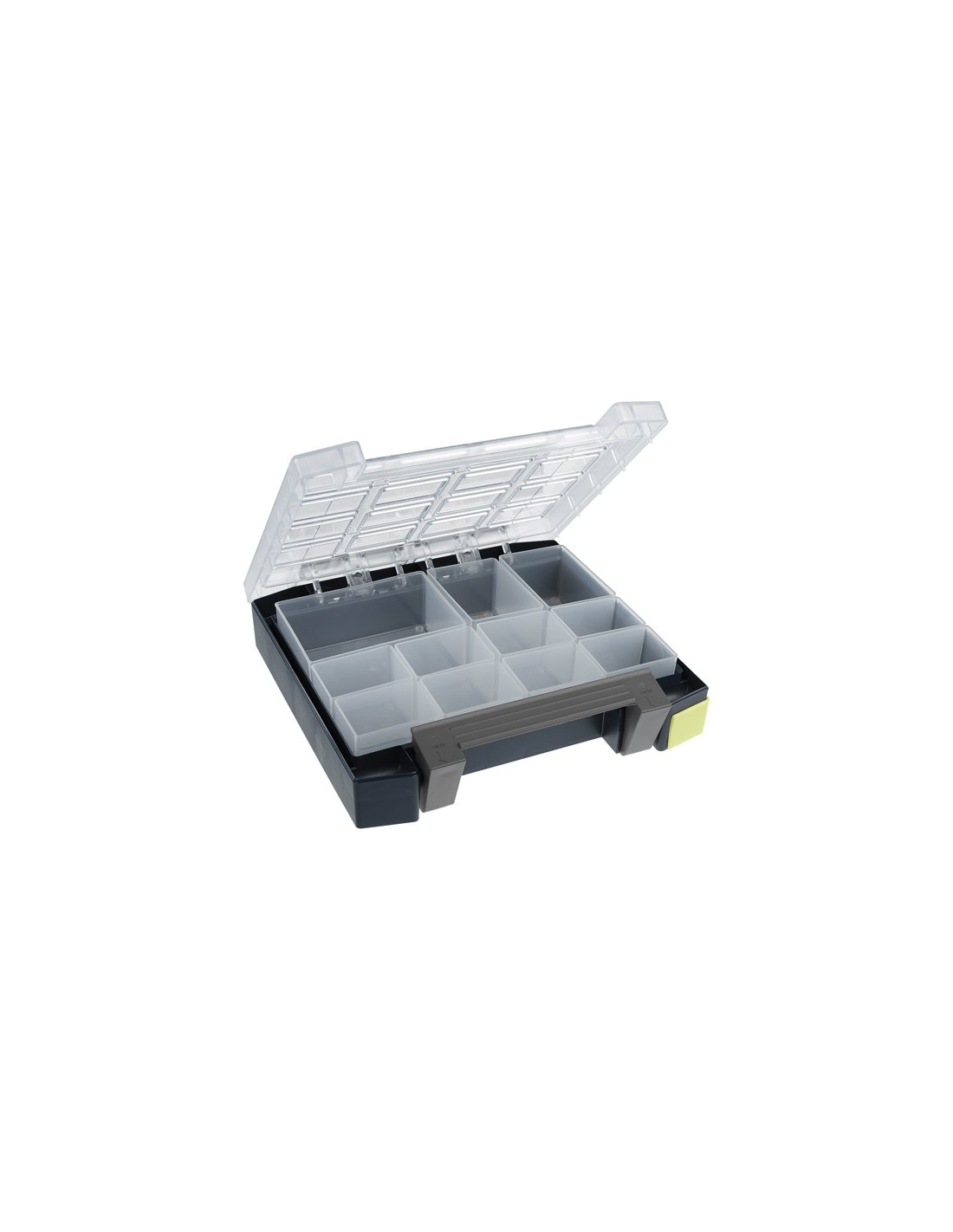 Maletín de polipropileno y tapa de policarbonato y con perfiles en O hacen que no se muevan las pequeñas piezas.