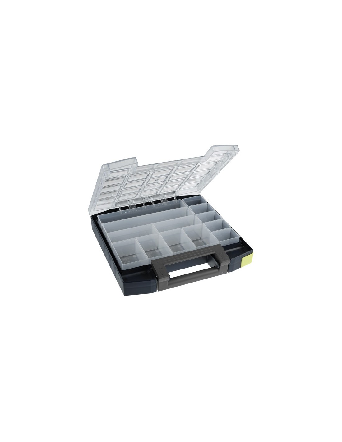 Maletín de polipropileno y tapa de policarbonato y con perfiles en O hacen que no se muevan las pequeñas piezas.