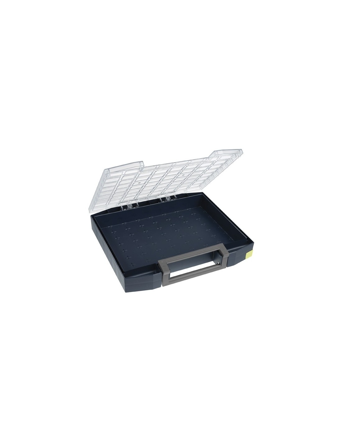 Maletín de polipropileno y tapa de policarbonato y con perfiles en O hacen que no se muevan las pequeñas piezas.