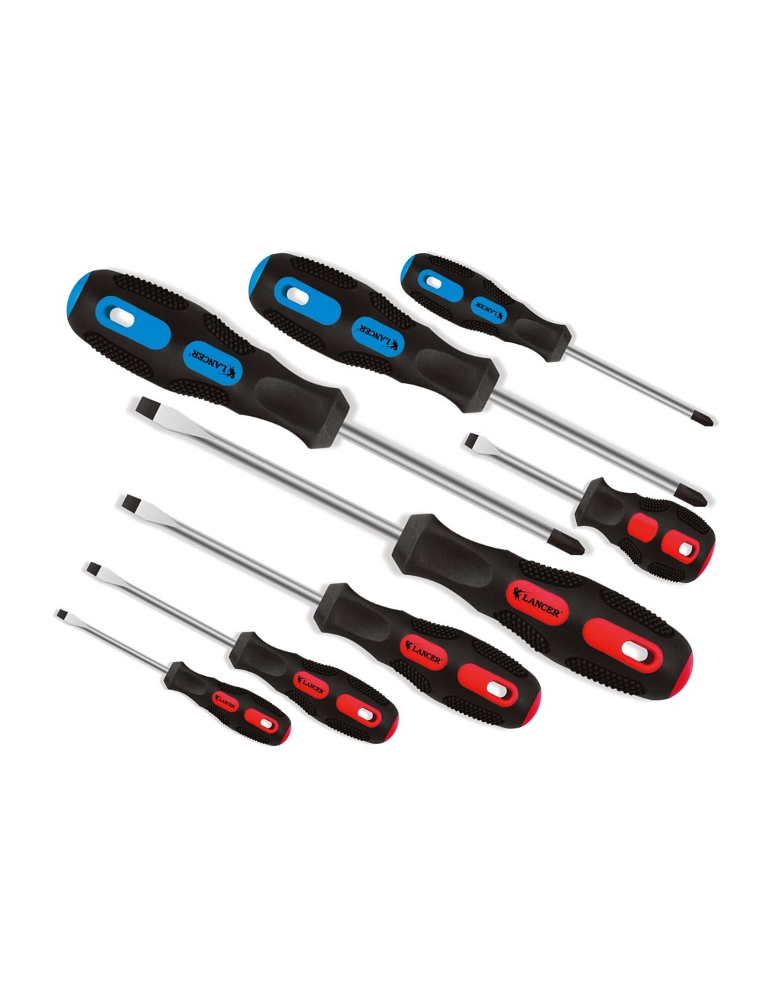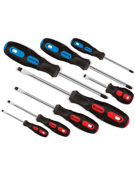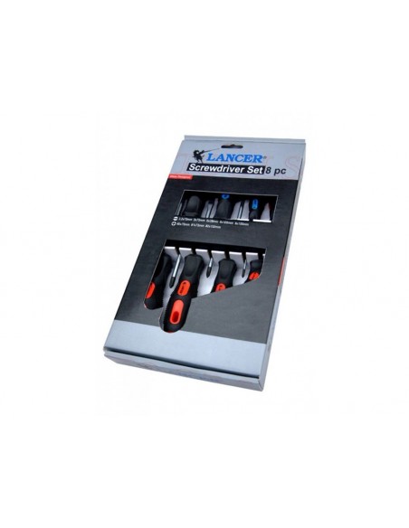 Juego de 8 destornilladores profesionales en caja de cartón.