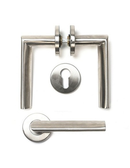 Manilla de acero para puerta de 35 a 60mm de grosor con roseta redonda